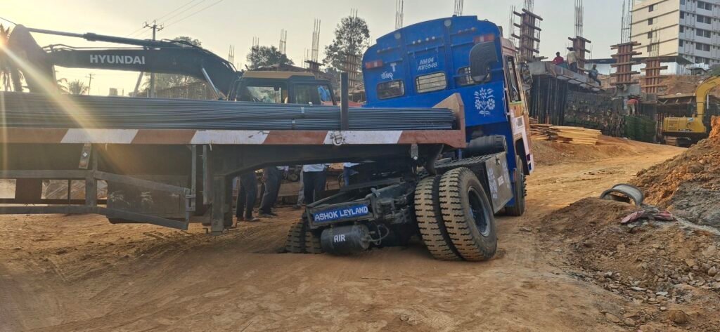ಗುರುವಾಯನಕೆರೆ : ರಾಷ್ಟ್ರೀಯ ಹೆದ್ದಾರಿಯಲ್ಲಿ ಚರಂಡಿಯಲ್ಲಿ ಕಬ್ಬಿಣದ ರಾಡ್ ಸಾಗಾಟದ ಬೃಹತ್ ಲಾರಿ ಸಿಲುಕಿದ ಪರಿಣಾಮ ಹೆದ್ದಾರಿ ಸಂಚಾರ ಬಹುತೇಕ ಬ್ಲಾಕ್ ಆಗಿದೆ.
