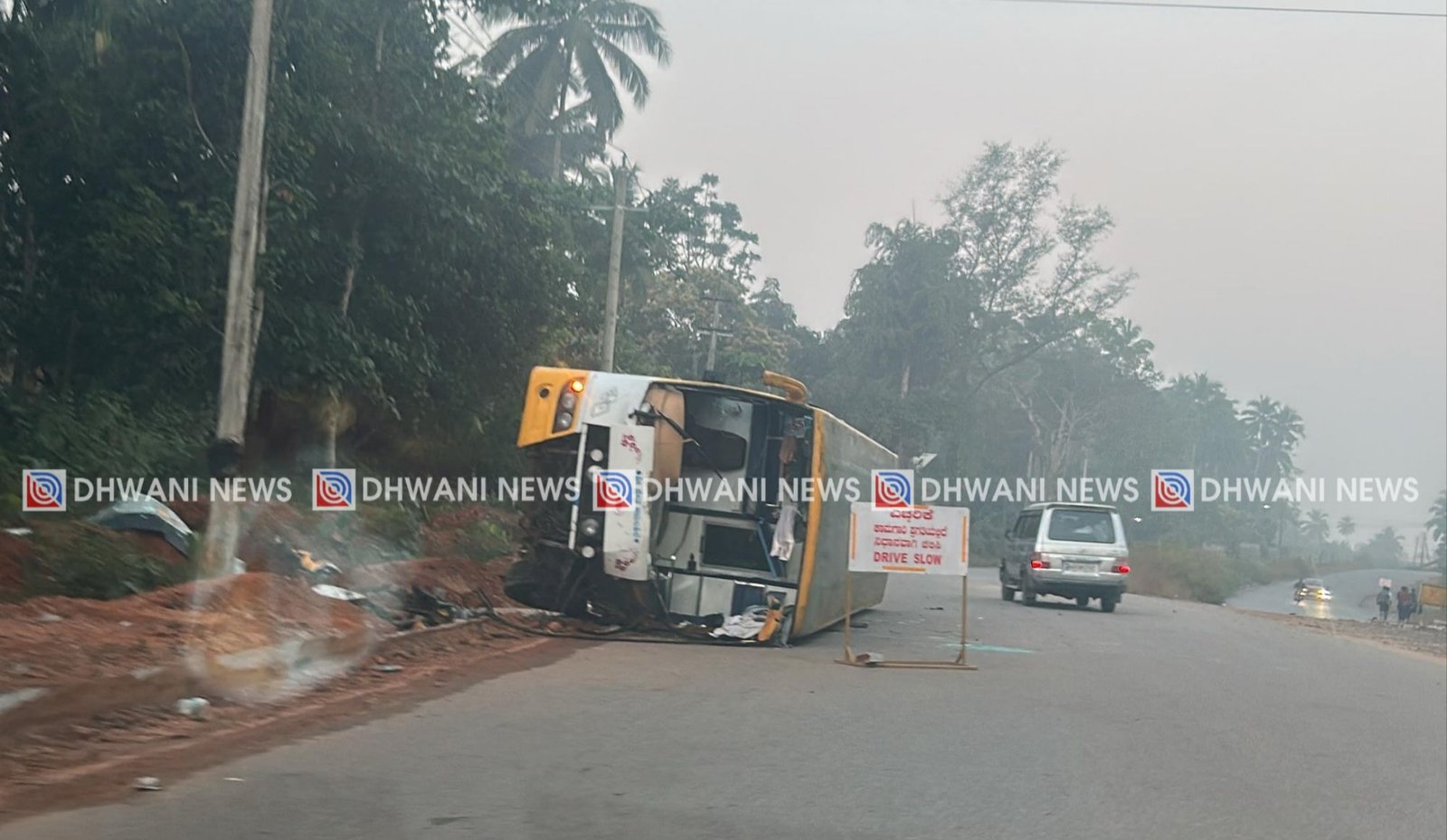 ಕಾರ್ಕಳ : ಚಾಲಕನ ನಿಯಂತ್ರಣ ತಪ್ಪಿ ಪಲ್ಟಿಯಾದ ಬಸ್ : ಓರ್ವ ಸಾವು, ಹಲವರಿಗೆ ಗಾಯ