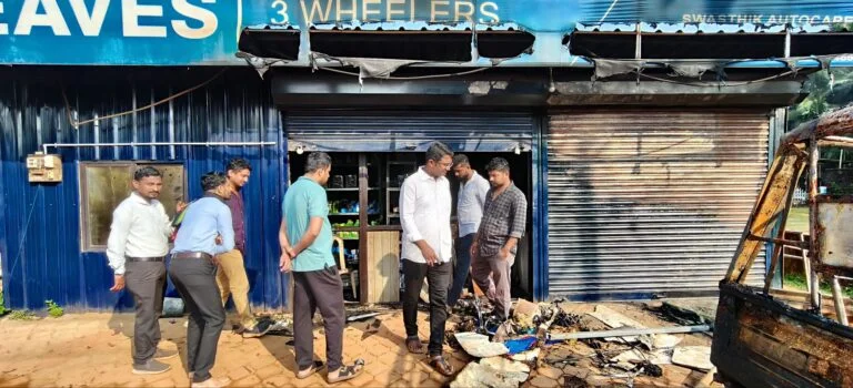 ಹಳೆಕೋಟೆ : ಬೆಂಕಿ ಅವಘಡಕ್ಕೊಳಗಾದ ಆಟೋ ಗ್ಯಾರೇಜ್ ಗೆ ರಕ್ಷಿತ್ ಶಿವರಾಂ ಭೇಟಿ