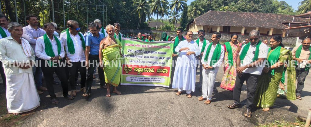 ಮೂಡುಬಿದಿರೆ : ಯುಕೆಟಿಎಲ್ (UKTL) 400ಕೆವಿ ವಿದ್ಯುತ್ ಪ್ರಸರಣ ಕಂಪನಿಯ ದೌರ್ಜನ್ಯ ಮತ್ತು ಬೆದರಿಕೆ ನೀತಿಯನ್ನು ವಿರೋಧಿಸಿ ಕಲ್ಲಮುಂಡ್ಕೂರು ಹಾಗೂ ನಿಡ್ಡೋಡಿ ಗ್ರಾಮಗಳ ರೈತರು ಸೋಮವಾರ ‘ರೈತ ಸ್ವಾಭಿಮಾನಿ ಜಾಥಾ’ ನಡೆಸಿ ಆಕ್ರೋಶ ವ್ಯಕ್ತಪಡಿಸಿದ್ದಾರೆ. ಯಾವುದೇ ಸೂಕ್ತ ಪರಿಹಾರ ನೀಡದೆ ರೈತರ ಅಡಿಕೆ ಮತ್ತು ತೆಂಗಿನ ತೋಟಗಳನ್ನು ನಾಶಪಡಿಸುತ್ತಿರುವುದನ್ನು ಹಾಗೂ ಸುಳ್ಳು ಕೇಸ್ ಗಳ ಮೂಲಕ ಬೆದರಿಕೆ ಹಾಕುತ್ತಿರುವುದನ್ನು ಖಂಡಿಸಿ ಈ ಪ್ರತಿಭಟನೆ ಹಮ್ಮಿಕೊಳ್ಳಲಾಗಿತ್ತು.
