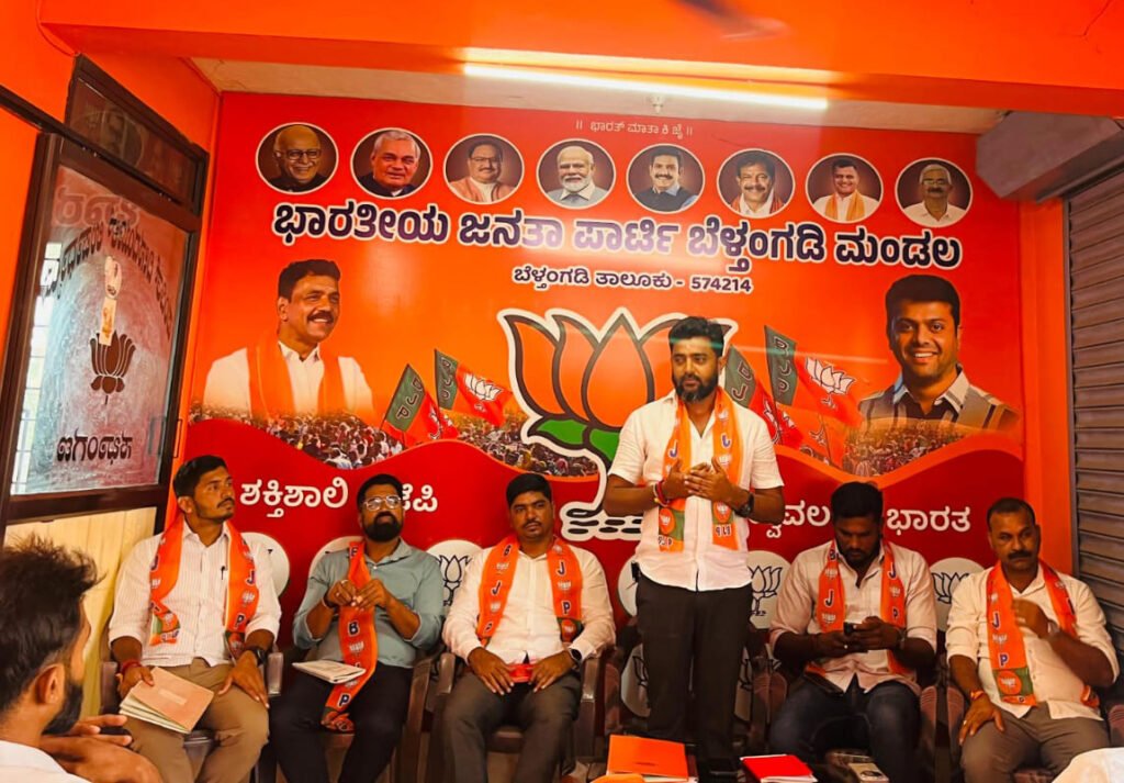 ಬೆಳ್ತಂಗಡಿ, ಏ. 22 : ಭಾರತೀಯ ಜನತಾ ಪಾರ್ಟಿ ಯುವ ಮೋರ್ಚಾ ಬೆಳ್ತಂಗಡಿ ಮಂಡಲದ ವತಿಯಿಂದ ಯುವಮೋರ್ಚಾ ಮಂಡಲ ಅಧ್ಯಕ್ಷ ಶಶಿರಾಜ್ ಶೆಟ್ಟಿಯವರ ಅಧ್ಯಕ್ಷತೆಯಲ್ಲಿ ಎಪ್ರಿಲ್ 21 ರಂದು ಪಕ್ಷದ ಕಚೇರಿಯಲ್ಲಿ ನೂತನ ಪದಾಧಿಕಾರಿಗಳಿಗೆ ಅಧಿಕಾರ ಹಸ್ತಾಂತರ ಕಾರ್ಯಕ್ರಮ ನೆರವೇರಿತು.