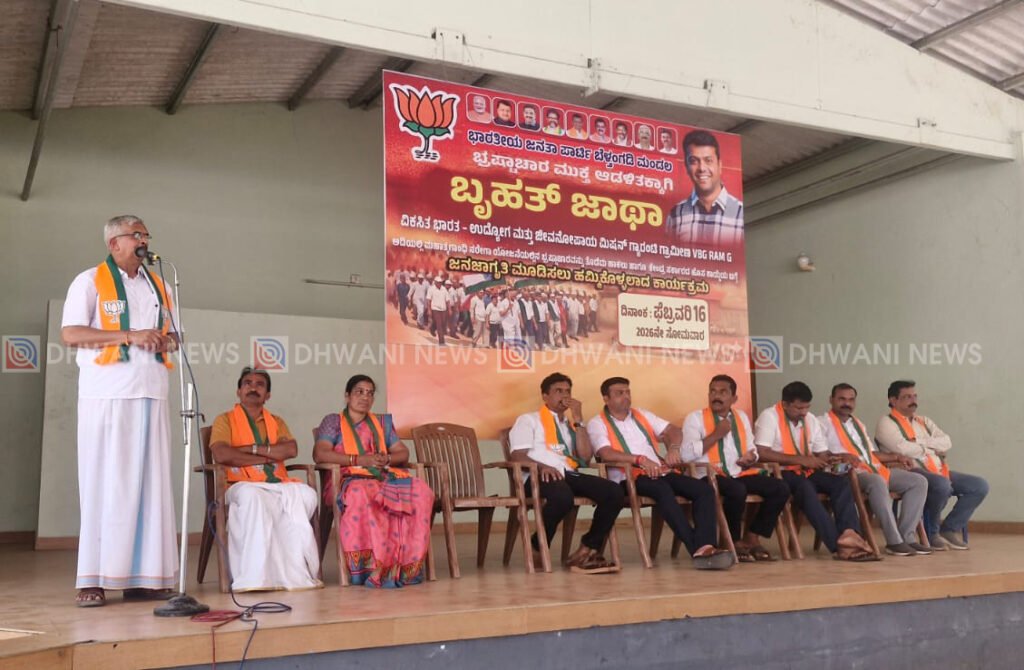 ಬೆಳ್ತಂಗಡಿ, ಫೆ. 16 : ಭಾರತೀಯ ಜನತಾ ಪಾರ್ಟಿ ಬೆಳ್ತಂಗಡಿ ಮಂಡಲ ಭ್ರಷ್ಟಾಚಾರ ಮುಕ್ತ ಆಡಳಿತಕ್ಕಾಗಿ ಹಾಗೂ ವಿಕಸಿತ ಭಾರತ – ಉದ್ಯೋಗ ಮತ್ತು ಜೀವನೋಪಾಯ ಮಿಷನ್ ಗ್ಯಾರಂಟಿ ಗ್ರಾಮೀಣ VBG RAM G ಮಹಾತ್ಮಗಾಂಧಿ ನರೇಗಾ ಯೋಜನೆಯಲ್ಲಿನ ಭ್ರಷ್ಟಾಚಾರವನ್ನು ತೊಡೆದು ಹಾಕಲು ಹಾಗೂ ಕೇಂದ್ರ ಸರ್ಕಾರದ ಹೊಸ ಕಾಯ್ದೆಯ ಗೆ ಜನಜಾಗೃತಿ ಮೂಡಿಸಲು ಇಂದು ಬೆಳ್ತಂಗಡಿ ಶಾಸಕರ ಶ್ರಮಿಕರ ಕಚೇರಿಯಿಂದ ಸಮಾಜ ಮಂದಿರದವರೆಗೆ ಬೃಹತ್ ಜಾಥಾ ನಡೆಯಿತು.