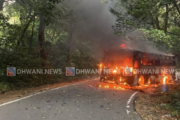 ಮಡಿಕೇರಿ : ರಸ್ತೆ ಮಧ್ಯೆಯೇ ಹೊತ್ತಿ ಉರಿದ ಪ್ರವಾಸಿ ಬಸ್ – ತಪ್ಪಿದ ಭಾರಿ ಅನಾಹುತ