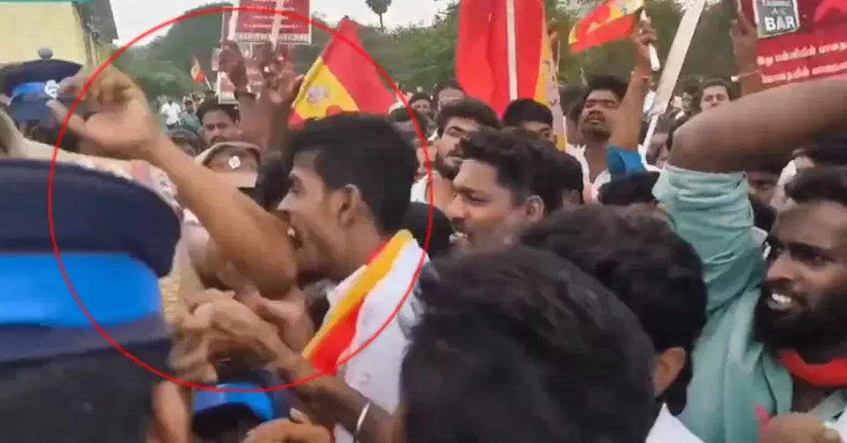 ಪ್ರತಿಭಟನೆ ವೇಳೆ ಪೊಲೀಸ್ ಅಧಿಕಾರಿಗೆ ಕಚ್ಚಿದ ವ್ಯಕ್ತಿ – ವೀಡಿಯೋ ವೈರಲ್