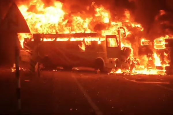 ಆಂಧ್ರಪ್ರದೇಶ : ಭೀಕರ ರಸ್ತೆ ಅಪಘಾತ – ಬಸ್ ಮತ್ತು ಲಾರಿ ನಡುವೆ ಡಿಕ್ಕಿ – ಕನಿಷ್ಠ 13 ಮಂದಿ ಸಜೀವ ದಹನ ! VIDEO