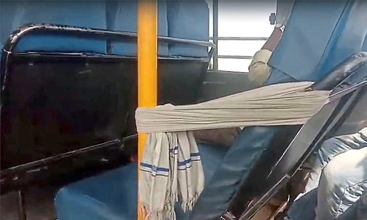 ಚಿಕ್ಕಮಗಳೂರು : “ಶಕ್ತಿ” ಕಳೆದುಕೊಂಡ ಸರ್ಕಾರಿ ಬಸ್ ಸೀಟ್’ಗೆ ಟವೆಲ್ ಆಸರೆ ರೈತ – ಸರ್ಕಾರಿ ಬಸ್ಸಿನ ದುರಾವಸ್ಥೆಗೆ ಹಿಡಿದ ಕೈಗನ್ನಡಿ !