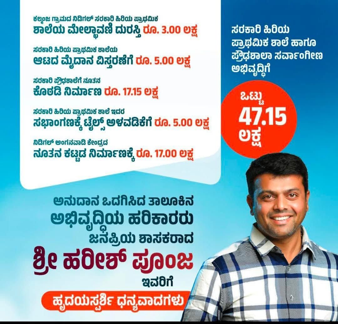 ಕಲ್ಮಂಜ : ನಿಡಿಗಲ್ ಸ.ಹಿ.ಪ್ರಾ. ಶಾಲೆ, ಪ್ರೌಢಶಾಲಾ ಅಭಿವೃದ್ಧಿಗೆ ಶಾಸಕ ಹರೀಶ್ ಪೂಂಜಾರಿಂದ ಒಟ್ಟು 47.15 ಲಕ್ಷ ಅನುದಾನ