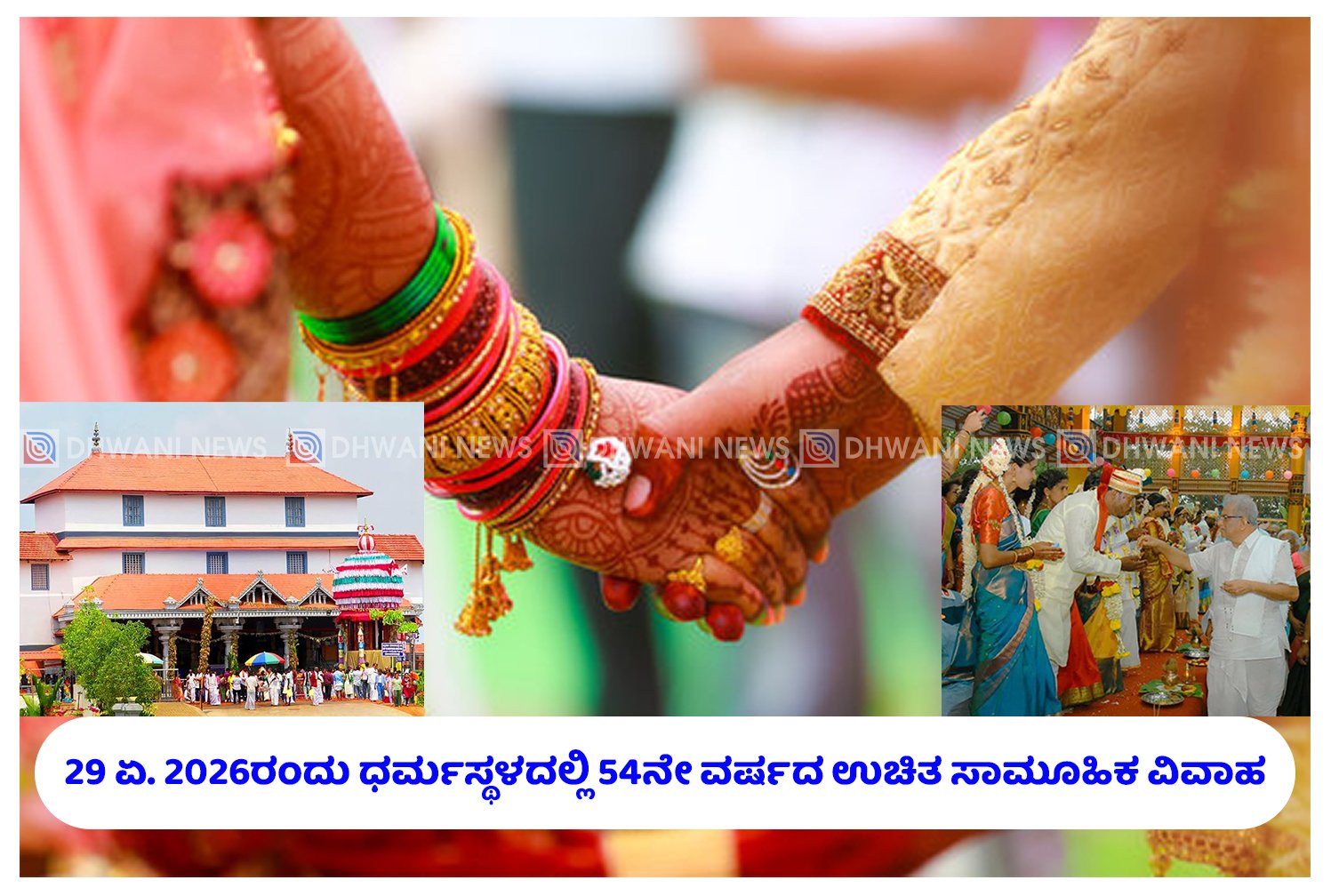 29 ಏ. 2026ರಂದು ಧರ್ಮಸ್ಥಳದಲ್ಲಿ 54ನೇ ವರ್ಷದ ಉಚಿತ ಸಾಮೂಹಿಕ ವಿವಾಹ