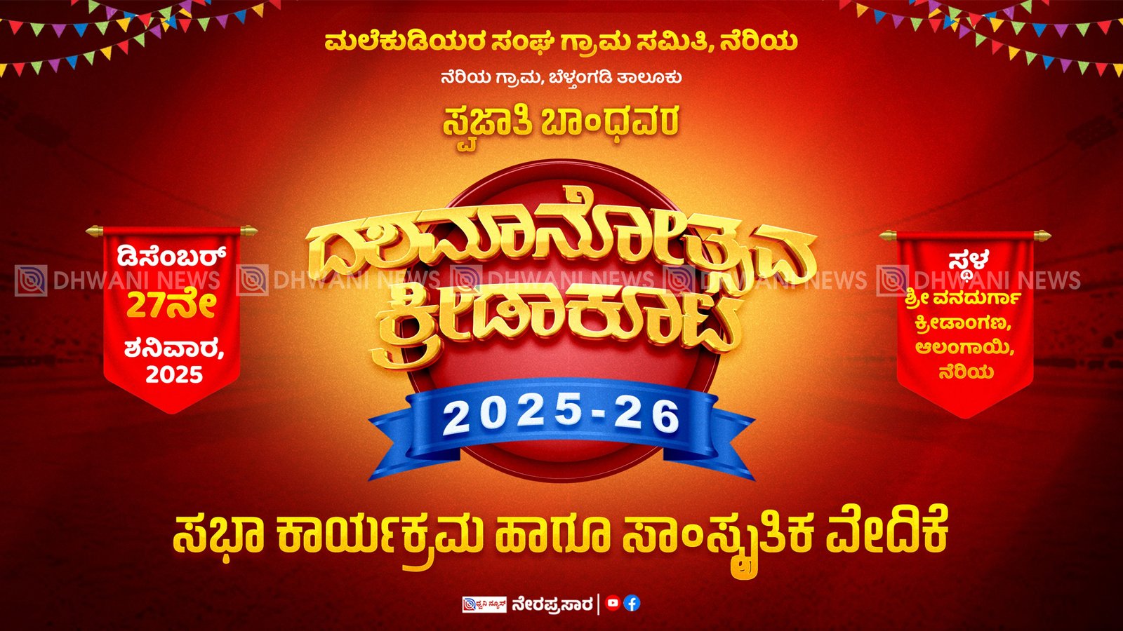 ನೆರಿಯ : ಡಿ. 27ರಂದು ಮಲೆಕುಡಿಯರ ಸಂಘ ಗ್ರಾಮ ಸಮಿತಿ, ನೆರಿಯ ವತಿಯಿಂದ ಸ್ವಜಾತಿ ಬಾಂಧವರ ದಶಮಾನೋತ್ಸವ ಕ್ರೀಡಾಕೂಟ