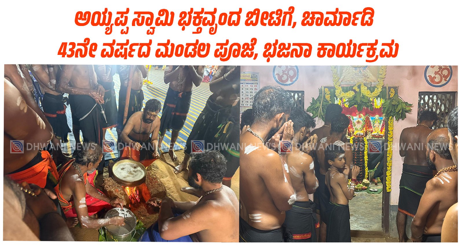 ಬೆಳ್ತಂಗಡಿ : ಅಯ್ಯಪ್ಪ ಸ್ವಾಮಿ ಭಕ್ತವೃಂದ ಬೀಟಿಗೆ, ಚಾರ್ಮಾಡಿ ಇದರ ಆಶ್ರಯದಲ್ಲಿ 43ನೇ ವರ್ಷದ ಮಂಡಲ ಪೂಜೆ, ಭಜನಾ ಕಾರ್ಯಕ್ರಮ