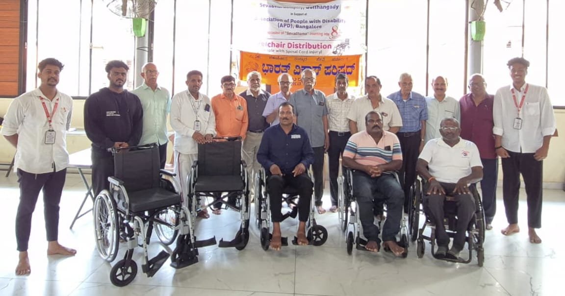 ಕನ್ಯಾಡಿ ಸೇವಾಭಾರತಿಯಿಂದ ಉಡುಪಿಯಲ್ಲಿ 4 ಮಂದಿ ಬೆನ್ನುಹುರಿ ಅಪಘಾತಕ್ಕೊಳಗಾದ ದಿವ್ಯಾಂಗರಿಗೆ ಗಾಲಿಕುರ್ಚಿ ವಿತರಣೆ