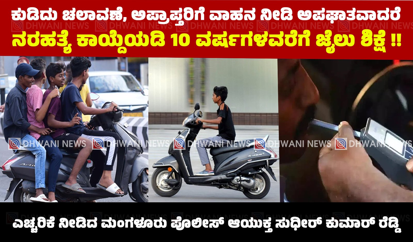 ಕುಡಿದು ಚಲಾವಣೆ, ಅಪ್ರಾಪ್ತರಿಗೆ ವಾಹನ ನೀಡಿ ಅಪಘಾತವಾದರೆ ನರಹತ್ಯೆ ಕಾಯ್ದೆಯಡಿ 10 ವರ್ಷಗಳವರೆಗೆ ಜೈಲು ಶಿಕ್ಷೆ !!