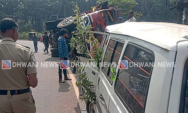 ಸುಳ್ಯ : ನಿಂತಿದ್ದ ಓಮ್ನಿ ಕಾರಿಗೆ ಗುದ್ದಿ ಲಾರಿ ಪಲ್ಟಿ- ಚಾಲಕನಿಗೆ ಗಂಭೀರ ಗಾಯ