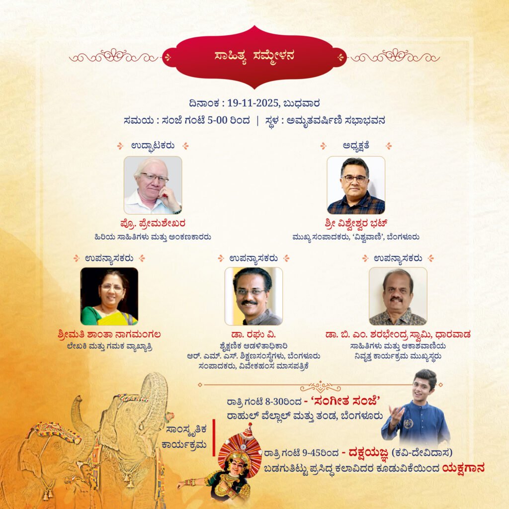 ಇನ್ನು, ಸಂಜೆ 05:00 ಗಂಟೆಯಿಂದ ಕ್ಷೇತ್ರದ ಅಮೃತವರ್ಷಿಣಿ ಸಭಾ ಭವನದಲ್ಲಿ 93ನೇ ಸಾಹಿತ್ಯ ಸಮ್ಮೇಳನವು ಜರುಗಲಿದೆ. ಸಾಹಿತ್ಯ ಸಮ್ಮೇಳನದ ಬಳಿಕ ಅದೇ ವೇದಿಕೆಯಲ್ಲಿ ರಾತ್ರಿ ಗಂಟೆ 08:30ರಿಂದ ಬೆಂಗಳೂರಿನ ರಾಹುಲ್ ವೆಲ್ಲಾಲ್ ಮತ್ತು ತಂಡದಿಂದ ಸಂಗೀತ ಸಂಜೆ ಹಾಗೂ ರಾತ್ರಿ ಗಂಟೆ 09:45ರಿಂದ ಬಡಗುತಿಟ್ಟು ಪ್ರಸಿದ್ಧ ಕಲಾವಿದರ ಕೂಡುವಿಕೆಯಿಂದ “ದಕ್ಷಯಜ್ಞ” ಎಂಬ ಯಕ್ಷಗಾನವು ಪ್ರದರ್ಶನಗೊಳ್ಳಲಿದೆ. ಅಲ್ಲದೆ, ವಸ್ತುಪ್ರದರ್ಶನದ ವೇದಿಕೆಯಲ್ಲಿ ಶಾಸ್ತ್ರೀಯ ಸಂಗೀತ, ನೃತ್ಯ ಪ್ರದರ್ಶನ, ವಿಶ್ವಾಭಿಗಮನಮ್, ನೃತ್ಯರೂಪಕ, ಶಿವಾರ್ಪಣಮ್, ಸ್ನೇಹ ಮೆಲೋಡಿಸ್, ಭದ್ರಾವತಿ ತಂಡದಿಂದ ರಸಮಂಜರಿ ಕಾರ್ಯಕ್ರಮವು ಜರುಗಲಿದೆ.