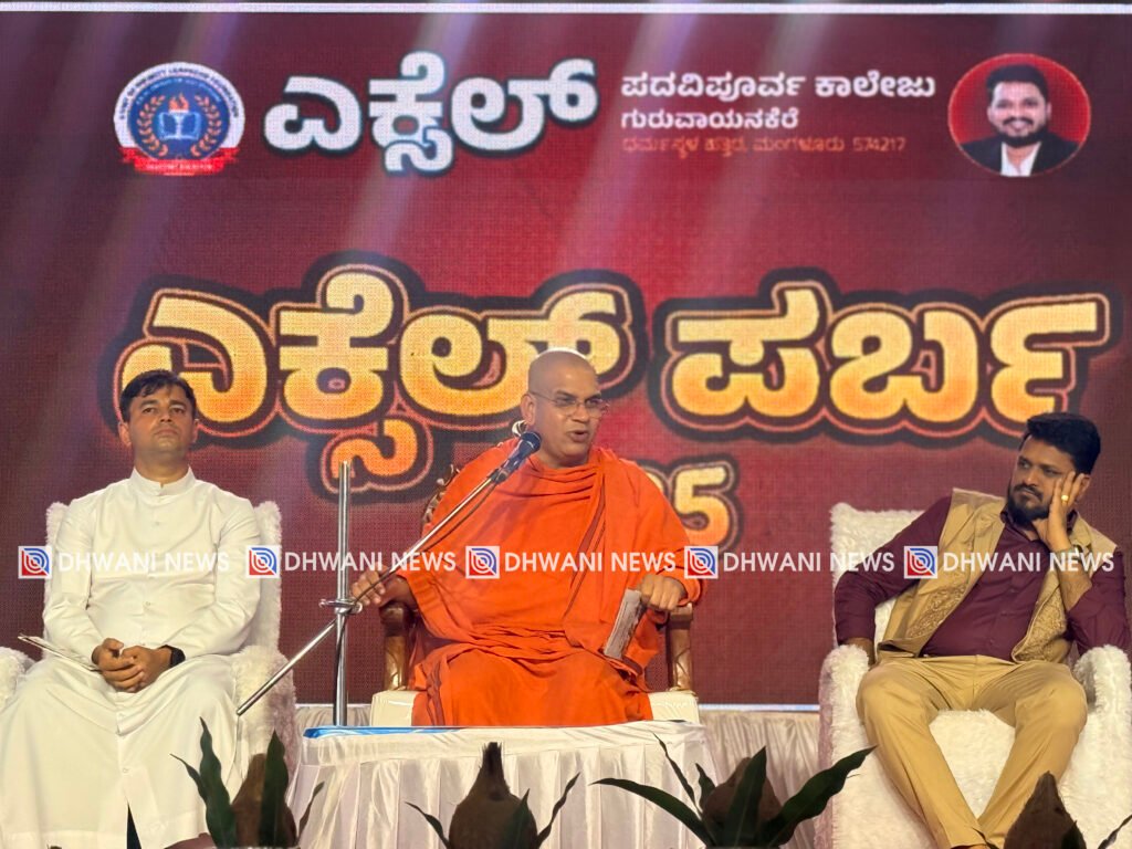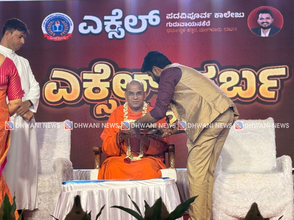 ಗುರುವಾಯನಕೆರೆ : ಎಕ್ಸೆಲ್ ಅಕ್ಷರೋತ್ಸವ – 2025 ಹಾಗೂ ಎಕ್ಸೆಲ್ ಪರ್ಬ – 2025 ಅಂಗವಾಗಿ ಇಂದು ಕಾಲೇಜು ವೇದಿಕೆಯಲ್ಲಿ ಪ್ರತಿಭಾ ಪುರಸ್ಕಾರ ಕಾರ್ಯಕ್ರಮ ನಡೆಯಿತು. ಸಾಧನೆಗೈದಂತಹ ವಿದ್ಯಾರ್ಥಿಗಳಿಗೆ ಬೆಳಗಾವಿಯ ಶ್ರೀ ನಿಡುಸೋಸಿ ಮಠದ ಶ್ರೀ ನಿಜಲಿಂಗೇಶ್ವರ ಸ್ವಾಮೀಜಿಗಳು ಪ್ರತಿಭಾ ಪುರಸ್ಕಾರಗೈದು ವಿದ್ಯಾರ್ಥಿಗಳನ್ನು ಗೌರವಿಸಿದರು.