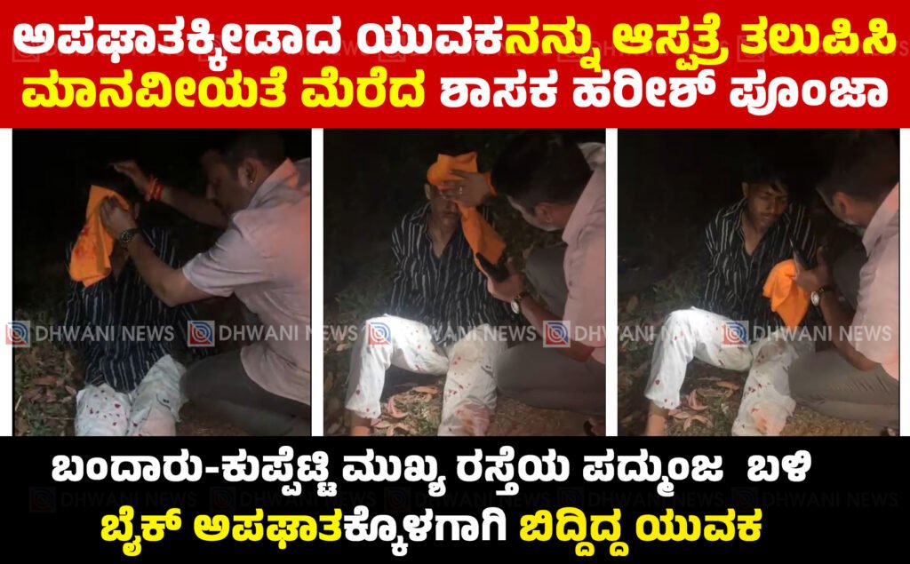 ಬೆಳಾಲಿನ ಆರಿಕೋಡಿ ದೇವಸ್ಥಾನದ ಕಾರ್ಯಕ್ರಮ ಮುಗಿಸಿ, ಬೇರೊಂದು ಕಾರ್ಯಕ್ರಮಕ್ಕೆ ತೆರಳುವ ಸಂದರ್ಭ ಬಂದಾರು-ಕುಪ್ಪೆಟ್ಟಿ ಮುಖ್ಯ ರಸ್ತೆಯ ಪದ್ಮುಂಜ ಬಳಿ ಬೈಕ್ ಅಪಘಾತಕ್ಕೊಳಗಾಗಿ ಯುವಕನೋರ್ವ ರಸ್ತೆಯಲ್ಲಿ ಬಿದ್ದಿದ್ದ. ಆತನನ್ನು ಕಂಡ ತಕ್ಷಣವೇ ಶಾಸಕ ಹರೀಶ್ ಪೂಂಜಾ ಅವರು ಕಾರು ನಿಲ್ಲಿಸಿ, ತುರ್ತಾಗಿ ಸ್ಪಂದಿಸಿದ್ದಾರೆ. ಸ್ಥಳದಲ್ಲಿ ಯುವಕನನ್ನು ತುರ್ತಾಗಿ ವಿಚಾರಿಸಿ, ಚಿಕಿತ್ಸೆಗಾಗಿ ಆಸ್ಪತ್ರೆಗೆ ಕಳುಹಿಸಿ ಮಾನವೀಯತೆ ಮೆರೆದಿದ್ದಾರೆ. ಶಾಸಕರ ಮಾನವೀಯ ಕಾರ್ಯಕ್ಕೆ ಸಾರ್ವಜನಿಕರಿಂದ ವ್ಯಾಪಕ ಮೆಚ್ಚುಗೆ ವ್ಯಕ್ತವಾಗಿದೆ.