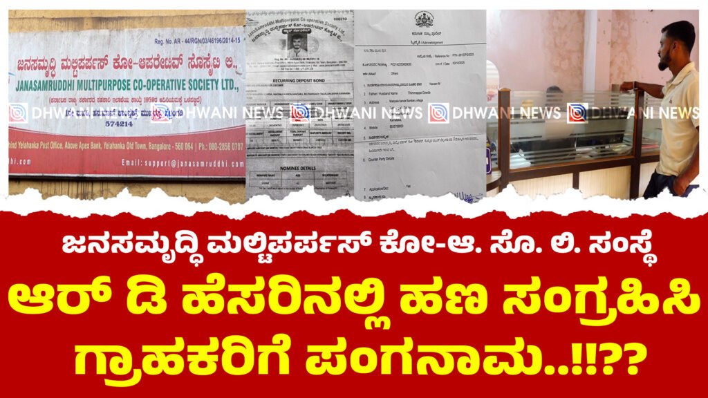 ಬೆಂಗಳೂರಿನಲ್ಲಿ ಮುಖ್ಯ ಕಚೇರಿಯನ್ನು ಹೊಂದಿರುವ ಜನಸಮೃದ್ಧಿ ಮಲ್ಟಿಪರ್ಪಸ್ ಕೋ-ಆಪರೇಟಿವ್ ಸೊಸೈಟಿ ಲಿಮಿಟೆಡ್ ಬೆಳ್ತಂಗಡಿಯಲ್ಲಿ ಶಾಖೆಯನ್ನು ಹೊಂದಿದೆ. 2022ರಲ್ಲಿ ಆರ್ ಡಿ ಹಣ ಕಟ್ಟಲು ಆರಂಭ ಮಾಡಿದ್ದೇನೆ, ಅದು 2025ರ ಆಗಸ್ಟ್ 29ಕ್ಕೆ ಮುಗಿದಿದೆ. ಆಗಸ್ಟ್ ತಿಂಗಳಲ್ಲೇ ಹಣವನ್ನು ಹಿಂತಿರುಗಿಸಬೇಕಿತ್ತು ಆದರೆ, ಈವರೆಗೆ ಹಣ ಹಿಂತಿರುಗಿಸದೆ ಮೋಸ ಮಾಡುತ್ತಿದ್ದಾರೆ ಎಂದು ಹಣ ಕಳೆದುಕೊಂಡಿರುವ ಗ್ರಾಹಕ ಬಂದಾರು ನಿವಾಸಿ ನವೀನ್ ಆರೋಪಿಸಿದ್ದಾರೆ. ಕೆಲವು ತಿಂಗಳ ಹಿಂದೆ ವಕೀಲರ ಜೊತೆಗೆ ಬೆಂಗಳೂರಿನಲ್ಲಿರುವ ಮುಖ್ಯ ಕಚೇರಿಗೆ ನಾವು ತೆರಳಿ ಮಾತನಾಡಿದ್ದೆವು ಎರಡು ದಿನದೊಳಗಡೆ ಹಣ ಪಾವತಿಸುತ್ತೇವೆ ಎಂದಿದ್ದರು. ಆದರೆ, ಇಲ್ಲಿಯವರೆಗೆ ಹಣ ಪಾವತಿಸಿಲ್ಲ. ಆ ಬಳಿಕ ಕರೆ ಮಾಡಿದರೂ ಕೂಡಾ ಪ್ರತಿಕ್ರಿಯೆ ಕೊಡುತ್ತಿಲ್ಲ. ಅಲ್ಲದೆ, ಕಚೇರಿಗೆ ಬಂದು ಕೇಳಿದರೂ ಕೂಡಾ ಯಾವುದೇ ಪ್ರತಿಕ್ರಿಯೆ ಇಲ್ಲ. ಪ್ರತೀ ತಿಂಗಳು 5,000 ಸಾವಿರ ರೂಪಾಯಿಯಂತೆ 36 ತಿಂಗಳು ಹಣ ಪಾವತಿಸಿದ್ದೇವೆ. ಮೆಚ್ಯುರಿಟಿ ಸೇರಿ ನಮಗೆ ಸುಮಾರು 2 ಲಕ್ಷದ 87 ಸಾವಿರದ 22 ರೂಪಾಯಿ ಬರಬೇಕಿತ್ತು. ಆದರೆ ಹಣ ಪಾವತಿಸದೆ ಮೋಸ ಮಾಡುತ್ತಿದ್ದಾರೆ. ಬೆಳ್ತಂಗಡಿ ತಾಲೂಕಿನಲ್ಲೇ ಕೋಟ್ಯಾಂತರ ಹಣ ವಂಚಿಸಿರುವ ಬಗ್ಗೆ ಮಾಹಿತಿ ಇದೆ ಎಂದು ಗಂಭೀರ ಆರೋಪ ಮಾಡಿದ್ದಾರೆ.
