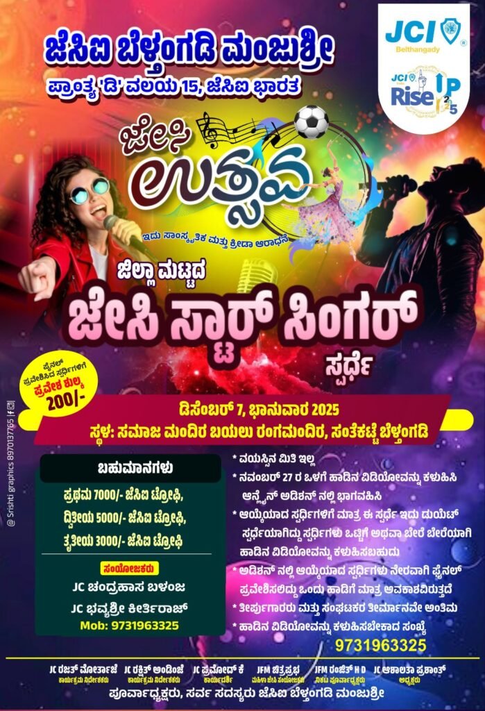 ಜಿಲ್ಲಾ ಮಟ್ಟದ ಜೆಸಿ ಸ್ಟಾರ್ ಸಿಂಗರ್ ಸ್ಪರ್ಧೆ :