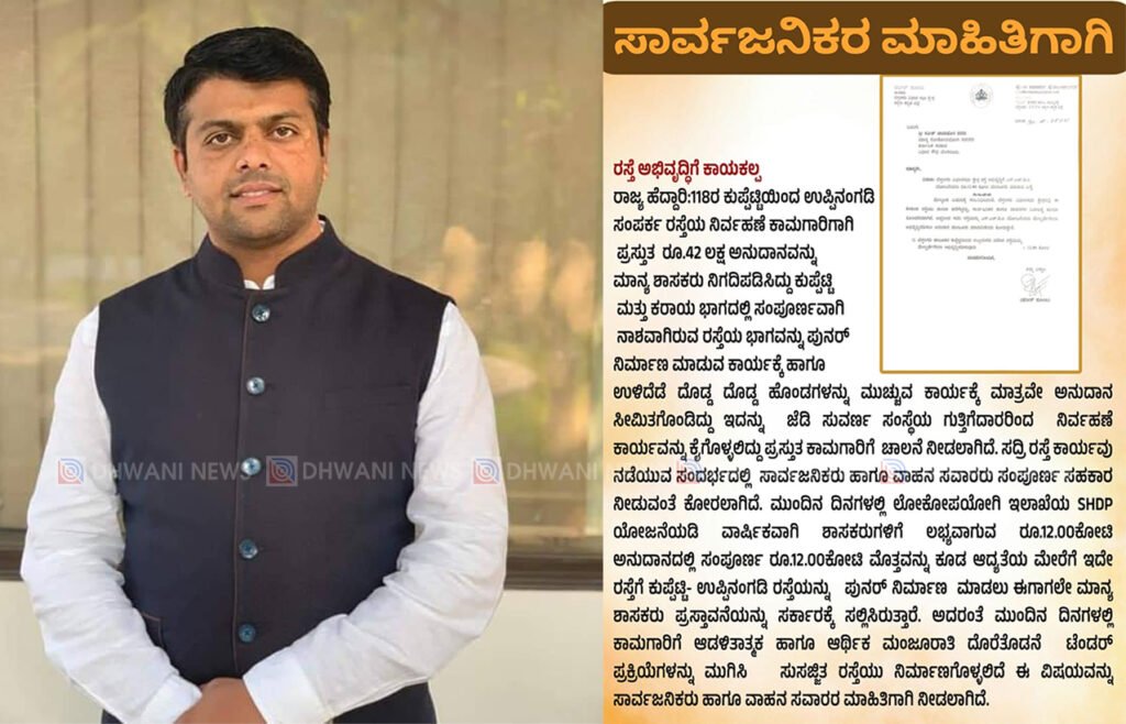 ಕುಪ್ಪೆಟ್ಟಿ – ಉಪ್ಪಿನಂಗಡಿ ರಸ್ತೆಯು ಕಳೆದ ಮಳೆಗಾಲದ ಸಮಯದಲ್ಲಿ ಸಂಪೂರ್ಣವಾಗಿ ಹಾನಿಗೊಂಡಿದ್ದು, ಸಾರ್ವಜನಿಕರು ವ್ಯಾಪಕವಾಗಿ ಆಕ್ರೋಶ ವ್ಯಕ್ತಪಡಿಸುತ್ತಲೇ ಇದ್ದಾರೆ. ಈ ರಸ್ತೆ ನಿರ್ಮಾಣಕ್ಕಾಗಿ ಶಾಸಕರ ನೇತೃತ್ವದಲ್ಲಿ ಕುಪ್ಪೆಟ್ಟಿಯಲ್ಲಿ ಪ್ರತಿಭಟನೆಯನ್ನೂ ನಡೆಸಲಾಗಿತ್ತು. ಅಲ್ಲದೆ, ಅನುದಾನ ಒದಗಿಸುವಂತೆ ಶಾಸಕ ಹರೀಶ್ ಪೂಂಜಾರವರು ಅಧಿವೇಶನದಲ್ಲಿ ಧ್ವನಿಯೆತ್ತಿದ್ದರು. ಆದರೆ, ಈವರೆಗೆ ಈ ರಸ್ತೆಯ ನಿರ್ಮಾಣಕ್ಕೆ ಸರ್ಕಾರ ಅನುದಾನ ಬಿಡುಗೊಡೆಗೊಳಿಸಿಲ್ಲ ಎಂಬ ಆರೋಪ ಇದೆ. ಇದೀಗ ಶಾಸಕ ಹರೀಶ್ ಪೂಂಜಾರವರು ಮೊದಲ ಹಂತದ ಕಾಮಗಾರಿಗಾಗಿ ಪ್ರಸ್ತುತ ರೂ.42 ಲಕ್ಷ ಅನುದಾನವನ್ನು ನೀಡಿದ್ದು, ಕಾಮಗಾರಿಗೆ ಚಾಲನೆ ನೀಡಲಿದ್ದಾರೆ. ಅಲ್ಲದೆ, ಮುಂದಿನ ದಿನಗಳಲ್ಲಿ ರೂ.12 ಕೋಟಿ ಮೊತ್ತವನ್ನು ಆದ್ಯತೆಯ ಮೇರೆಗೆ ಇದೇ ರಸ್ತೆಗೆ ಪ್ರಸ್ತಾವನೆ ಸಲ್ಲಿಸಲಾಗಿದ್ದು, ಆಡಳಿತಾತ್ಮಕ ಹಾಗೂ ಆರ್ಥಿಕ ಮಂಜೂರಾತಿ ದೊರೆತ ತಕ್ಷಣ ಟೆಂಡರ್ ಪ್ರಕ್ರಿಯೆ ನಡೆಯಲಿದೆ ಎಂದು ಶಾಸಕರು ಮಾಹಿತಿ ನೀಡಿದ್ದಾರೆ. ರಾಜ್ಯ ಸರ್ಕಾರವೂ ಕೂಡಾ ಈ ರಸ್ತೆಯ ನಿರ್ಮಾಣಕ್ಕೆ ಆದ್ಯತೆಯ ಮೇರೆಗೆ ಆದಷ್ಟು ಶೀಘ್ರವಾಗಿ ಒಪ್ಪಿಗೆ ನೀಡಲಿ ಎಂಬುದು ಸಾರ್ವಜನಿಕರ ಒತ್ತಾಯವಾಗಿದೆ.