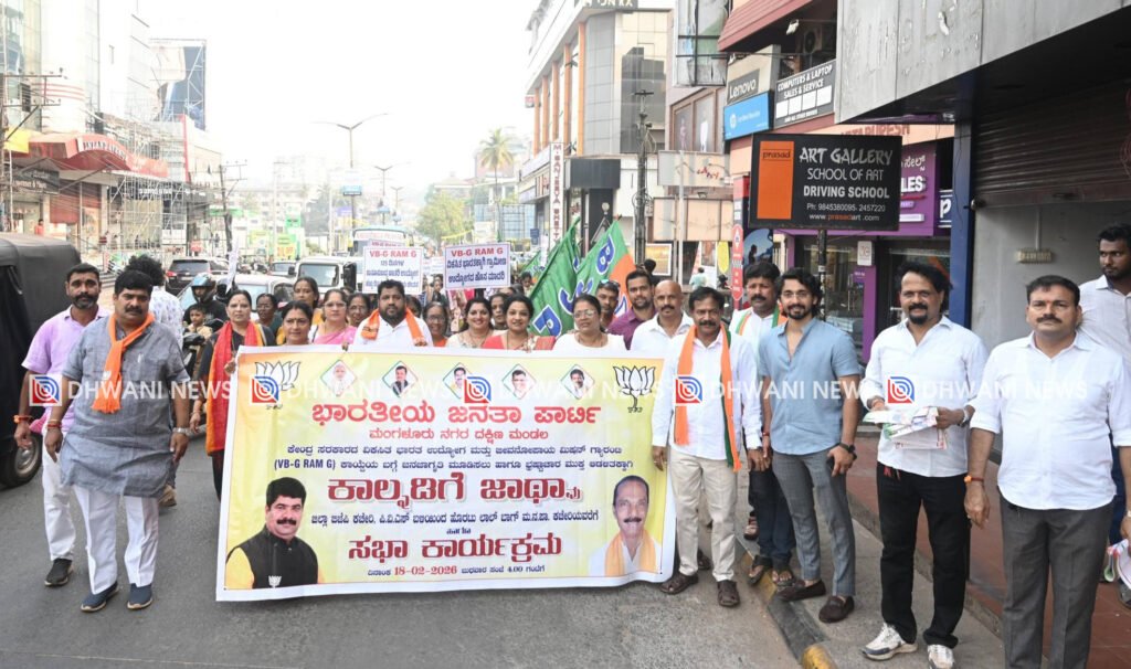 ಬಿಜೆಪಿ ಮಂಗಳೂರು ನಗರ ದಕ್ಷಿಣ ಮಂಡಲ ವತಿಯಿಂದ ಕೇಂದ್ರ ಸರಕಾರದ ವಿಬಿ ಜಿ ರಾಮ್ ಜಿ ಕಾಯ್ದೆಯ ಬಗ್ಗೆ ಜನಜಾಗೃತಿ ಹಾಗೂ ರಾಜ್ಯದಲ್ಲಿ ಭ್ರಷ್ಟಾಚಾರ ಮುಕ್ತ ಆಡಳಿತಕ್ಕಾಗಿ ಬಿಜೆಪಿ ಜಿಲ್ಲಾ ಕಚೇರಿ ಬಳಿಯಿಂದ ಮ.ನ.ಪಾ ಕಚೇರಿ ವರೆಗೆ ಬೃಹತ್ ಕಾಲ್ನಡಿಗೆ ಜಾಥಾ ನಡೆಯಿತು. ಈ ವೇಳೆ ಮಾತನಾಡಿದ ಅವರು, ವಿಬಿ-ಜಿ ರಾಮ್ ಜಿ ಕಾಯ್ದೆ ಮೂಲಕ ಬಡವರಿಗೆ ದುಡಿಯಲು ಹೆಚ್ಚಿನ ಅವಕಾಶ ನೀಡಿದರೂ ಕಾಂಗ್ರೆಸ್ಸಿಗರು ವಿರೋಧಿಸುತ್ತಿದ್ದಾರೆ ಎಂದರೆ ಅವರ ಉದ್ದೇಶ ಬೇರೆ ಏನೋ ಇದೆ. ಈ ಕಾಂಗ್ರೆಸ್ ಸರ್ಕಾರದ ದುರಾಡಳಿತದಿಂದ ಜನರು ರೋಸಿ ಹೋಗಿದ್ದು, ಇ -ಖಾತಾ ಸಿಗದೇ, ಜೈಲ್ ಜಾಮರ್ ನಿಂದ ಜನರು ತೊಂದರೆ ಅನುಭವಿಸುತ್ತಿರುವಾಗ, ಕೆಂಪು ಕಲ್ಲು,- ಮರಳು ಸಿಗದೇ ಒದ್ದಾಡುತ್ತಿದ್ದಾಗ ಈ ಕಾಂಗ್ರೆಸ್ ನವರು ಪಾದಯಾತ್ರೆ ಮಾಡಿದ್ರಾ ? ಎಂದು ಪ್ರಶ್ನಿಸಿದರು.