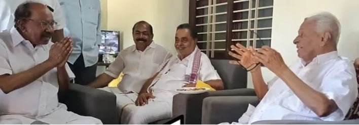 ಮಂಗಳೂರು, ಫೆ. 02 : ದೀರ್ಘ ಕಾಲದಿಂದಲೂ ರಾಜಕೀಯ ದ್ವೇಷದಿಂದಾಗಿ ಸ್ನೇಹ ಮರೆತು ವೈರತ್ವ ಸಾಧಿಸಿದ್ದ ಕರಾವಳಿಯ ಶ್ರೇಷ್ಠ ನಾಯಕರು ಇದೀಗ ಮತ್ತೆ ಒಂದಾಗಿದ್ದಾರೆ. ಈ ಮೂಲಕ ರಾಜಕಾರಣದ ದ್ವೇಷ ಶಾಶ್ವತವಲ್ಲ ಎಂಬುದನ್ನು ಸಾರಿದ್ದಾರೆ. ಹಿರಿಯ ಕಾಂಗ್ರೆಸ್ ಮುಖಂಡ ಜನಾರ್ಧನ ಪೂಜಾರಿಯವರ ಮನೆಗೆ ಹಿರಿಯ ಕಾಂಗ್ರೆಸ್ ಮುಖಂಡ ವೀರಪ್ಪ ಮೊಯ್ಲಿ ಅವರು ಭೇಟಿ ನೀಡಿ, ಆರೋಗ್ಯ ವಿಚಾರಿಸಿ ಮಾತುಕತೆ ನಡೆಸಿದ್ದಾರೆ. ಈ ಮಾತುಕತೆಯಲ್ಲಿ ರಾಜಕೀಯದ ಸಣ್ಣ ಪದಗಳೂ ಬರಲಿಲ್ಲ ಎಂಬುದು ವಿಶೇಷ.