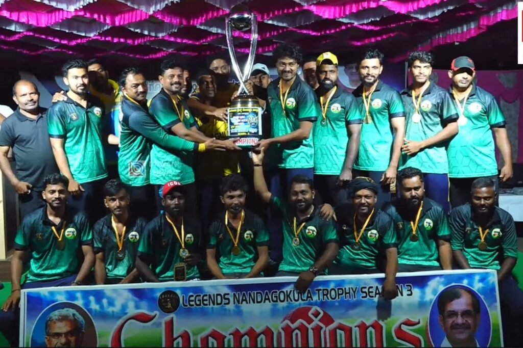 ಧರ್ಮಸ್ಥಳ, ಡಿ. 18 : ಪೂಜ್ಯ ಖಾವಂದರ ಶುಭಾಶೀರ್ವಾದಗಳೊಂದಿಗೆ ಹಾಗೂ ಪೂಜ್ಯ ಸಣ್ಣಧನಿಗಳ ಮಾರ್ಗದರ್ಶನಗಳೊಂದಿಗೆ, ಶ್ರೀ ಶ್ರೇಯಣ್ಣ ಮತ್ತು ಶ್ರೀ ನಿಶು ಅಣ್ಣನವರ ಸಹಕಾರದೊಂದಿಗೆ ನಂದಗೋಕುಲ ಫ್ರೆಂಡ್ಸ್ ಜೋಡುಸ್ಥಾನ ಧರ್ಮಸ್ಥಳ ಇವರ ಸಾರಥ್ಯದಲ್ಲಿ ನಂದಗೋಕುಲ ಟ್ರೋಫಿ Season-3 ಧರ್ಮಸ್ಥಳದ ಅನ್ನಪೂರ್ಣ ಛತ್ರದ ಹಿಂಬದಿ ಮೈದಾನದಲ್ಲಿ ನಡೆಯಿತು. ಈ ಕ್ರೀಡಾಕೂಟದ ಚಾಂಪಿಯನ್ ಆಗಿ ಪ್ರಶಾಂತ್ ಭಂಡಾರಿ ಮಾಲಕತ್ವದ ಶ್ರೀಮುಡಿ ಕ್ರಿಕೆಟರ್ಸ್ ತಂಡವು ಹೊರಹೊಮ್ಮಿದೆ. ದ್ವೀತೀಯ ಸ್ಥಾನವನ್ನು ಅವಿನಾಶ್ ಶೆಟ್ಟಿ ಮಾಲಕತ್ವದ ಅಸ್ಪಿರೆಂಟ್ಸ್ ತನ್ನದಾಗಿಸಿಕೊಂಡಿದೆ. ಇನ್ನು, ತೃತೀಯ ಸ್ಥಾನ – ಸದಾಶಿವ ಕಾಫಿ ಡೇ ಮಾಲಕತ್ವದ ಕಾಫಿ ಡೇ ತಂಡ, ಚತುರ್ಥ ಸ್ಥಾನ ಸುದರ್ಶನ್ ಶೆಟ್ಟಿ ಮಾಲಕತ್ವದ ಸಾನಿಧ್ಯ ಕ್ರಿಕೆಟರ್ಸ್ ತೃಪ್ತಿಪಟ್ಟುಕೊಂಡಿತು.