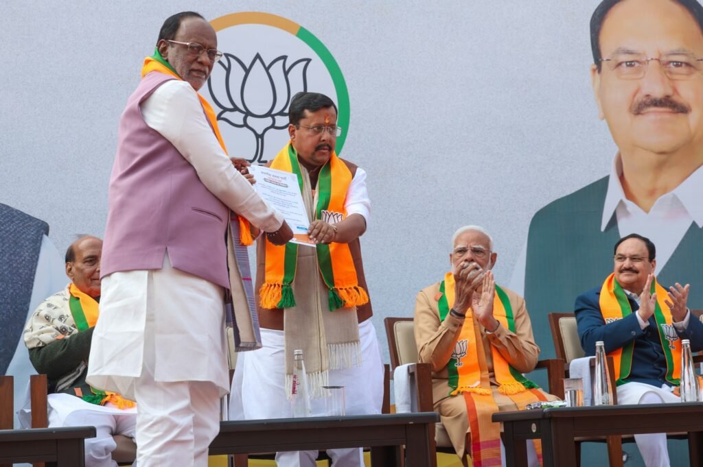 ಪ್ರಧಾನಿ ನರೇಂದ್ರ ಮೋದಿ, ಕೇಂದ್ರ ಗೃಹ ಸಚಿವ ಅಮಿತ್ ಶಾ, ರಕ್ಷಣಾ ಸಚಿವ ರಾಜ್ ನಾಥ್ ಸಿಂಗ್, ಕೇಂದ್ರ ಹೆದ್ದಾರಿ ಮತ್ತು ಭೂಸಾರಿಗೆ ಸಚಿವ ನಿತಿನ್ ಗಡ್ಕರಿ ಮತ್ತಿತರ ಹಿರಿಯ ಬಿಜೆಪಿ ನಾಯಕರೆದುರು ನಿತಿನ್ ನಬಿನ್ ಪ್ರಮಾಣ ವಚನ ಸ್ವೀಕರಿಸಿದರು.