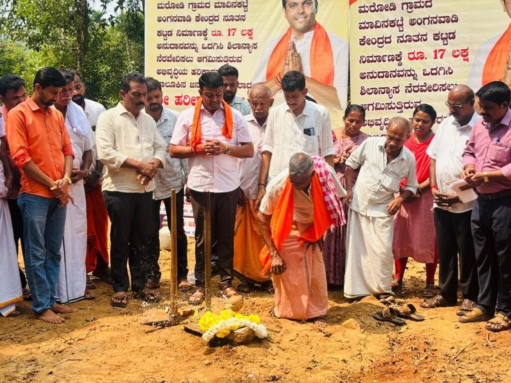 ಮರೋಡಿ, ಮಾ. 07 : ಮರೋಡಿ ಗ್ರಾಮದ ಮಾವಿನಕಟ್ಟೆ ಎಂಬಲ್ಲಿ ರೂ. 17.00 ಲಕ್ಷ ವೆಚ್ಚದಲ್ಲಿ ನಿರ್ಮಾಣಗೊಳ್ಳಲಿರುವ ಅಂಗನವಾಡಿ ಕೇಂದ್ರದ ನೂತನ ಕಟ್ಟಡ ಕಾಮಗಾರಿಗೆ ಶಾಸಕ ಹರೀಶ್ ಪೂಂಜಾರವರು ಶಿಲಾನ್ಯಾಸ ನೆರವೇರಿಸಿದರು.