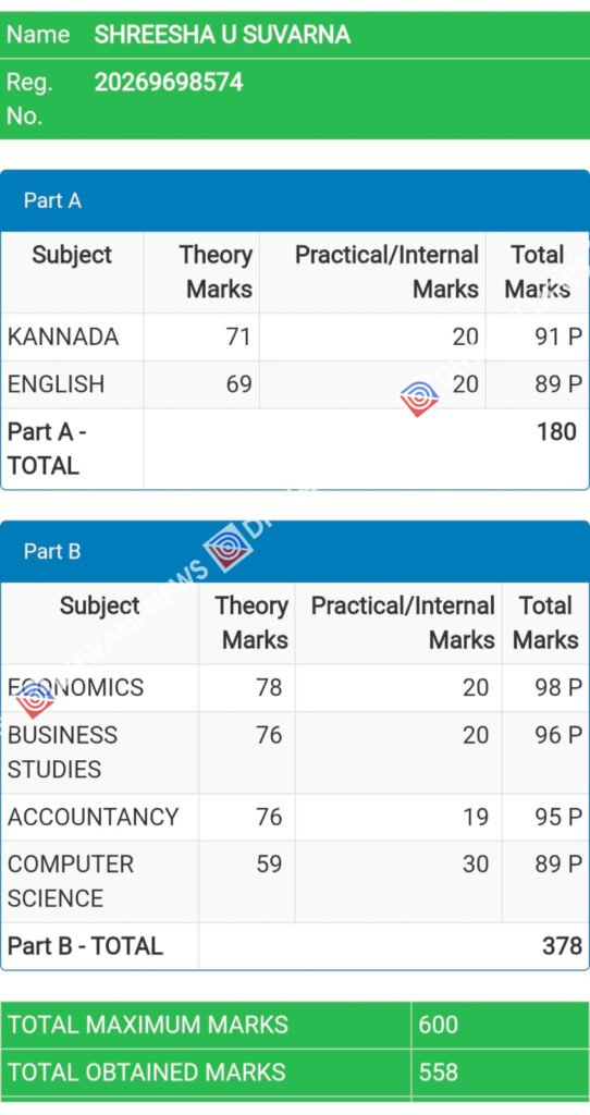 ಬೆಳ್ತಂಗಡಿ, ಏ. 10 : ಪ್ರಸಕ್ತ ಸಾಲಿನ ದ್ವಿತೀಯ ಪಿಯುಸಿ ಪರೀಕ್ಷೆಯಲ್ಲಿ ವಾಣಿ ಕಾಲೇಜಿನ ವಿದ್ಯಾರ್ಥಿನಿ ಶ್ರೀಷಾ ಸುವರ್ಣ ವಾಣಿಜ್ಯ ವಿಭಾಗದಲ್ಲಿ 600ಕ್ಕೆ 558 ಅಂಕ ಪಡೆದು ವಿಶಿಷ್ಟ ಶ್ರೇಣಿಯಲ್ಲಿ ಉತ್ತೀರ್ಣರಾಗಿದ್ದಾರೆ.