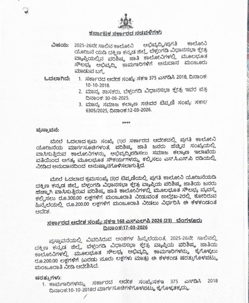 ಬೆಳ್ತಂಗಡಿ, ಮಾ 24 : ಬೆಳ್ತಂಗಡಿ ತಾಲೂಕಿನ ವಿವಿಧ ಗ್ರಾಮಗಳಲ್ಲಿ ಪರಿಶಿಷ್ಟ ಜಾತಿ ಸಮುದಾಯದ ರಸ್ತೆ ಅಭಿವೃದ್ಧಿಗಾಗಿ ರಾಜ್ಯ ಸರ್ಕಾರವು ಅನುದಾನವನ್ನು ಬಿಡುಗಡೆಗೊಳಿಸಿರುವುದಾಗಿ ಶಾಸಕ ಶ್ರೀ ಹರೀಶ್ ಪೂಂಜ ತಿಳಿಸಿದ್ದಾರೆ.
