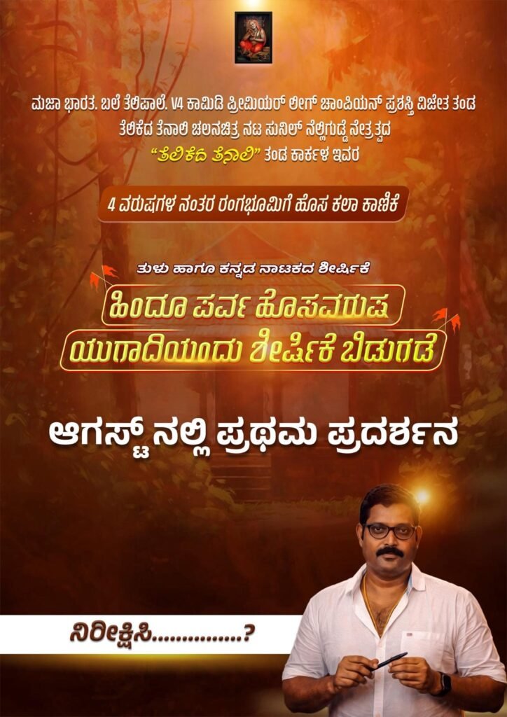 ಕಾರ್ಕಳ, ಮಾ. 17 : ಮಜಾ ಭಾರತ, ಬಲೆ ತೆಲಿಪಾಲೆ, V4 ಕಾಮಿಡಿ ಪ್ರೀಮಿಯರ್ ಲೀಗ್ ಚಾಂಪಿಯನ್ ಪ್ರಶಸ್ತಿ ವಿಜೇತ ತ೦ಡ ತೆಲಿಕೆದ ತೆನಾಲಿ ಚಲನಚಿತ್ರ ನಟ ಸುನಿಲ್ ನೆಲ್ಲಿಗುಡ್ಡೆ ನೇತೃತ್ವದ “ತೆಲಿಕೆದ ತೆನಾಲಿ” ತಂಡ ಕಾರ್ಕಳ ಇವರಿಂದ 4 ವರುಷಗಳ ನಂತರ ರ೦ಗಭೂಮಿಗೆ ಹೊಸವರುಷ ಯುಗಾದಿಯಂದು ಹೊಸ ಕಲಾ ಕಾಣಿಕೆ ನಡೆಯಲಿದೆ.